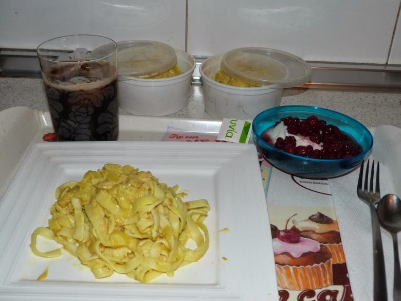 Lo dejas unos minutos sin dejar de remover y....¡ya está! En menos de 10 minutos tienes preparada una cenita sana (además ahí veis mis dos tuppers para el trabajo).El postre que veis ahí es un yogurt natural con frutos rojos (1 ProPoint)
