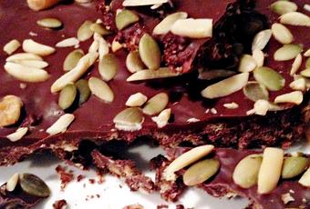 Desmenuza las galletas y extiende sobre papel de cocina. Funde chocolate al baño maría y mézclalo con las galletas uniformemente. Echa otra capa de chocolate, puedes alisarlo con ayuda de una espátula. Espolvorea los frutos secos al gusto y introduce en la nevera durante media hora. Y a disfrutar! Bon appetit!