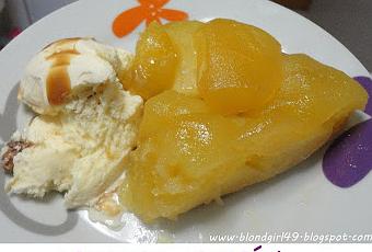 7. Cogemos la masa quebrada, cortamos las esquinas y pinchamos con un tenedor para hacerle agujeritos. 8. Con el fuego apagado pondremos la masa sobre las manzanas y los bordes los remeteremos un poco,9. Meteremos la cazuela así como la tenemos dentro del horno, la dejaremos con la misma temperatura hasta que veamos que la masa está dorada (unos 10 minutos)10. Dejaremos que se temple la olla y luego la cubriremos con un plato y giraremos para volcar la tarta. 11. Servimos un trozo de tarta caliente con helado ¡el contraste es espectacular!¡Lista para comer!