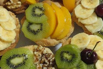 Usé: plátanos, kiwis, melocotón en almíbar, cerezas, nueces...
