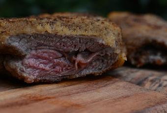 Hola a todos... Hoy os traigo una de esas recetas tradicionales que sólo al verla ya nos dan ganas de comer, se trata del cachopo asturiano, esa maravillosa carne de ternera empanada rellena de jamón serrano y queso, preparado a mi manera, y siempre digo a mi manera cuando se trata de recetas tradicionales ya que cada quien tiene su manera particular de prepararla!!El origen del término cachopo proviene de la semejanza que tienen estos deliciosos filetes empanados con los troncos de los castaños huecos de las montañas asturianas, por su color y tamaño.La carne para preparar este manjar ha de ser gustosa y suave, esta vez utilicé aleta, te sorprenderá lo bien que queda por lo tierna y jugosa, de mis amigos y proveedores habituales de carne de Masmit, siempre con una calidad extraordinaria