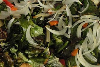 Para ponerle encima:- Un bol de acelgas- Pimiento rojo- 1 cebolla- Sal- Aceite