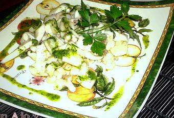 Hacemos hoy una receta sencilla y con un gran resultado, que bien puede hacerse con sepia o con "Cachon", de el tamaño de estas dependerá los tiempos para su realización. Un vez hecha las condimentamos con una emulsión de aceite de oliva virgen, ajo y perejil, sencilla elaboración y buenísimo resultado.RECETA:SEPIA CON AJO Y PEREJIL EMULSIONADO.-Ingredientes:- 2 Sepias limpias o un "Cachon" pequeño.