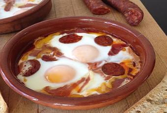 Calentamos el horno a 180º y cuando alcance la temperatura, colocamos todos los platos en una bandeja y la introducimos en el horno. Los sacamos cuando estén cuajadas las claras pero las yemas estén crudas.