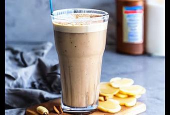 Smoothie de Chai Latte Vainilla: Mezcla una taza de chai latte vainilla con una taza de yogur griego, una taza de frutos rojos congelados y una cucharada de miel. Licúa todo hasta que quede suave y sirve en un vaso alto. Decora con un poco de canela en polvo.