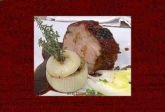 Para servir, cortar una rodaja gruesa de bondiola y disponer en el plato junto con una o dos endivias. Salsear con la reducción y decorar con alguna rama de tomillo o romero.