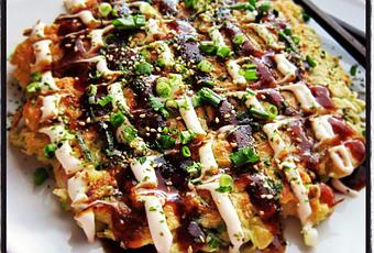 Okonomiyaki significa “cocinar en la plancha al gusto”. Se elige el relleno de la torta, de entre una amplia gama de posibilidades ( carne de buey, calamares, gambas, carne de cerdo, pulpo) se mezcla sobre una masa de huevo y harina y se cocinan sobre una plancha caliente. Una vez listo, este es cubierto con salsa de okonomiyaki, mayonesa, aonori y katsuobushi
