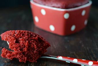 El Red Velvet Cake es un bizcocho que ya tenía mucho éxito en mi casa antes de que probase a hacer esta versión en formato mug cake. De hecho, como ya conté una vez cuando publiqué aquí la receta del Red Velvet que suelo hacer, mis hijos le llaman "ese bollito rojo tan rico que haces, mami". Este que hago ahora en taza me gusta tanto o más que el otro y la receta varía muy poquito. El Red Velvet tiene un sabor diferente, que te gusta o no te gusta, y a mí me encanta. Principalmente en los mug cakes cambian dos cosas: la forma de cocción y el recipiente. Un mug cake es, en líneas generales, un bizcocho hecho al microondas en menos de cinco minutos y en una taza. Algo tan sencillo y tan rápido que lo puede hacer hasta un niño. No siempre salen perfectos, como todo !! hay que cogerles el punto, investigar los errores y solucionarlos. A veces está la masa muy líquida o has llenado mucho la taza y se desbordan, o nos consigues que suba por igual y tienes que corregir la posición de la taza dentro del micro. Otras veces te queda gomoso porque te has pasado de tiempo o muy líquido porque no se terminó de hacer. Hay que controlar la temperatura pero es algo muy simple. Como digo hay que cogerles el truquillo y una vez cogido no puedes parar de hacerlos, hay de todas clases, dulces y salados. Yo ya he cocinado unos cuantos y no siempre me han quedado bien. Parece que cuando haces el que vas a fotografiar, como este, es el que peor sale, pero no, me han salido peores y también mejores. No sé bien el por qué ya que sigo la receta de Victoria siempre igual pero es quizá que no lleva del todo medidas exactas y en mí eso de una una cucharada, media cucharadita, una pizca... es según lo vea ese día o según coja la cuchara del tamaño que sea.
