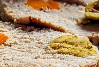 Ahora, con un chuchillo grande, rompe la sal, que debe estar bastante dura, saca el lomo, límpialo muy bien, quitando todos los rastros de sal, corta en rodajas finas y veras que delicia, el lomo mantendrá toda su jugosidad, las hierbas y el vino de dan un sabor intenso y maravilloso ue ya notarás desde que está en el horno.