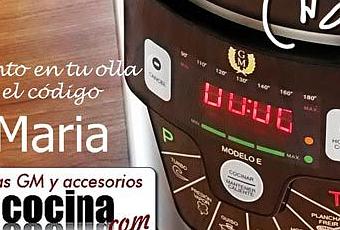 Además tenéis un 5% de descuento extra con mi código GMEMaria, válido para cualquier olla GM o para los lotes de Olla + Complementos. Estos precios incluyen los gastos de envío, en Península y Baleares (incluyendo Portugal) Cada olla trae los accesorios que se ven en la foto de arriba y un libro de recetas.