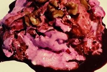 De topping le puse chocolate (caca en polvo desgrasado con agua) y nueces.