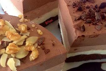 TARTA DE 3 CHOCOLATES FITNESSELABORACION:1)CAPA DE "GALLETA":Mezclar 100gr de harina de avena sabor chocolate,50ml de leche de almendra y edulcorante. Echar al molde y llevar al horno 5/7 minutos a 180°. Para que no se hinche, poner papel de horno encima cubrir de garbanzos. Sacar y dejar enfriar.