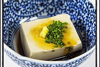 Hiyayakko o tofu frío, es un plato muy popular en verano, consiste en un bloque de tofu frío que se come habitualmente con un topping de cebolla galesa cortada muy fina, jengibre molido y salsa de soja.