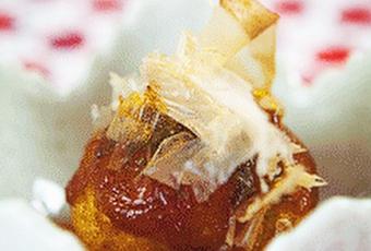 Ponemos la salsa por encima y espolvoreamos aonori y katsuobushi.