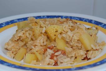 Para preparar esta rica y barata receta de arroz con chorizo y patatas, los ingredientes que necesitas son: