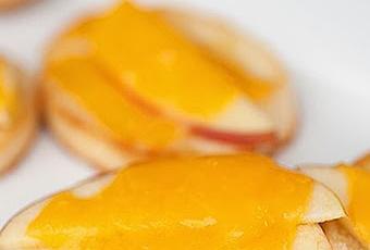 RecetaHorneamos las rebanadas de pan con un poco de aceite de oliva para que queden crujientes. A cada una le ponemos unas láminas finas de manzana y un poco de queso Chedar y horneamos durante 3min, hasta que el queso quede derretido. Servir caliente.