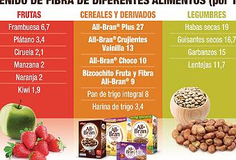 Hace poco tuvieron lugar las jornadas All-Bran, allí se presentó un estudio que dice que los españoles no llegamos a la ingesta adecuada de fibra diaria, ya que solo consumimos algo más de la mitad. Algo curioso es que las Comunidades Autónomas que más consumen son las del norte (Cantabria, Castilla León, Cataluña, Pais Vasco y Aragón) porque se come más que en otras zonas, pero no por una mayor densidad de fibra por cada 100 Kcal en su dieta.