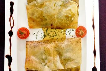 We prepare a cup with olive oil, garlic and parsley. With a cooking brush, we spread the brick pasta to be easier to mould. We add the filling and prepare the little bags as shown in the pictures with the help of two thootpicks. Finally with the pre-heated oven, we introduce the little bags on a baking paper spread with a little bit of olive oil to avoid them to stick on the paper. We let it for 10 minutes with a 200º temperature and voilà. It’s ready. Bon appetit.