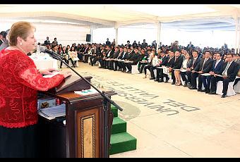 Manzur Quiroga dijo que al tener el título en sus manos, los jóvenes egresados pueden emprender nuevos retos. También felicitó a los docentes que diariamente pusieron su granito de arena en la formación de nuevos profesionales y agradeció a los padres de familia, quienes con su esfuerzo y apoyo contribuyeron a culminar los sueños de sus hijos.