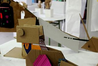 Recicla, abstrae, crea. Esculturas con la piel de cartónMuseo estrambótico, Chatarrería de los pensamientos, Los enlaces, Arte inimaginado, Minimuni: lluvia de cacharros, Cacharrineitor, ESO (Exposición Sobrenatural de Objetos), DRIPI (Donde Raras Imaginaciones Participan Inventando)…Estos son algunos de los títulos que los alumnos de primero de ESO del colegio Siglo XXI de Madrid han imaginado para denominar una muestra de escultura creativa expuesta en el centro. La exposición es un alucinante trabajo de grupo dirigido por la profesora Marian Pérez, como cierre de curso de la asignatura de Plástica.