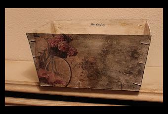 Pués son cajas de mejillones. Me encantaron nada más verlas y enseguida empecé a dar vueltas sobre cómo decorarlas. Empecé con un blanco sobre la madera, directamente, sin lijar, saqué mis papeles y plantillas, un recorte por aquí, pasta de relieve por allá, unos cuantos pájaros en la trasera, y para acabar, pincel secoDejé a la vista las grapas porque me parecía que reforzaban el estilo que quería darle.Vienen con tapadera, calada en el centro, así que saqué papeles de scrap y troqueles y preparé esta tapa, aunque finalmente me gustá más sin tapa, asi que ésta va a pasar a convertirse en marco de fotos.Bueno, pués aquí la véis con mi trapillo dentro.Ahora, a por la otra.¿Qué os parece?Es un proyecto similar al que aplicaremos en el taller de TECNICAS DE PINTURA DECORATIVA SOBRE REVISTERO DE MADERA que realizaremos en "VILMA STONED" el próximo sábado 30 de Enero, con turnos de mañana y tarde.Si queréis más información sobre éste taller o cualquier otro proyecto, aquí me podéis encontrar:[email protected]Tfno 626 428584Hasta dentro de unos días.