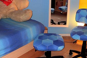 Tenia dos sillas de escritorio para tirar y pense que podia reciclarlas. Con las almohadas de dos nórdicos e confeccionado las fundas para las sillas con la técnica de password.Como la tela es una escala de colores en azul, se convina para que quede bien.cuando esta todo cosido le paso una goma alrededor para que coja la forma de la silla y el respaldo,es muy practico. Asi cuando se ensucie se quita y se lava, espero que les gusta la idea.