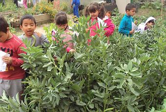 La primera cosecha del curso escolar en el huerto es la de habas.