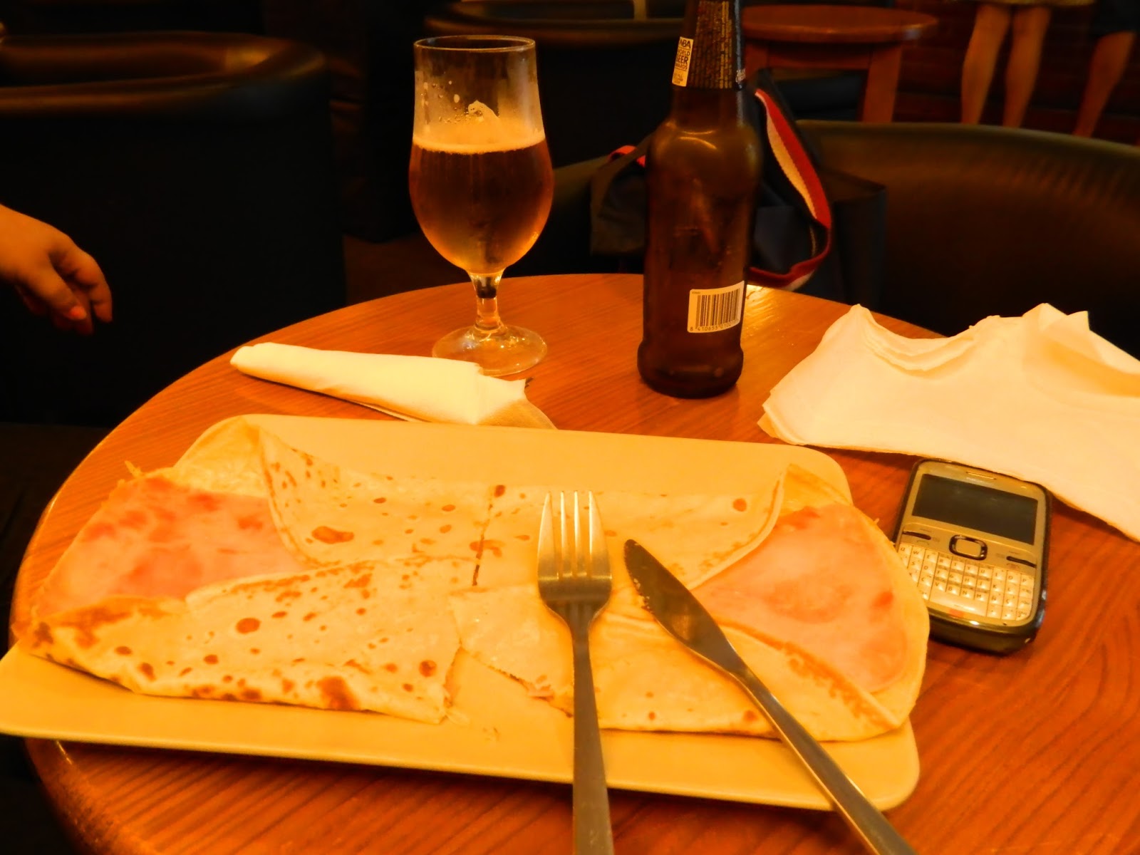 Tienen una carta bastante amplia desde cócteles, crêpes dulces, crêpes saladas y batidos, en los cócteles tienes la opción de pedirlo sin alcohol, lo cual está bien por si no quieres pillar un pedo a mitad de la tarde jajajajaja, yo me pedí una crêpe salada y la verdad es que nos bastó para las dos porque como veréis en la foto son de un buen tamaño, de modo que ella pidió la cerveza y yo la crêpe. Los precios de la carta son asequibles y te atienden muy bien!!!