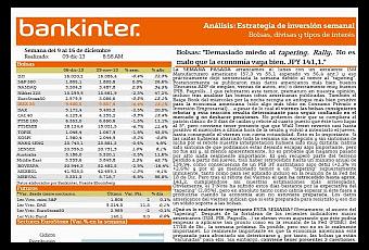 Bankinter. Análisis. Estrategia de inversión semanal. Bolsa, divisas y tipos de interés. 9 Diciembre 2013