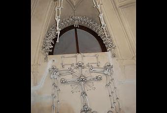 42 hectáreas me esperan de un horror con cierta belleza esperpéntica, artística y hermosa, dentro del marco espectral del más allá y la osamenta que queda visible cuando se aja y consume la piel que la cubre. El cementerio que visito recoge los restos de miles de muertos durante el periodo nefando de la peste. A este lugar los traían para ser enterrados. Es siniestra la capilla, pero como digo, no exenta de una belleza pintoresca y gélida como lo es la muerte. Cuelgan húmeros, tibias, clavículas, cráneos, costillas, fémures y esternones de los techos, en lámparas y arañas que acaso bien pudieran aparecer en algún film anacrónico de Boris Karloff o Christopher Lee. Las columnas, los techos y paredes, forman cenefas, conjuntos ornamentales compuestos por 35000 huesos. Es realmente curioso el escudo del imperio austro húngaro fabricado con este material de soporte humano.