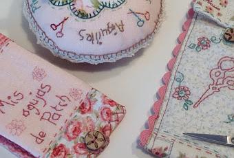 Sī, lo reconozco, me encantan los alfileteros, libritos guarda agujas, fundas para guardar las tijeras, pequeños busca tijeras...... Sí, me chiflan y más si son tan bonitos como los que vi en el libro de Delphine Mongrande. No me pude resistir porque me encantan los diseños que hay en este libro y, como os digo, estos pequeños set de costura me encantan.