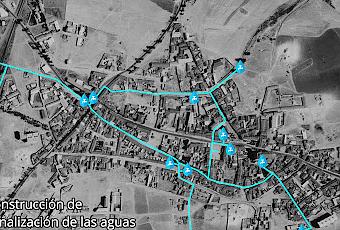 Como vemos en el siguiente gráfico que he elaborado a partir de los planos oficiales del proyecto, vemos como las canalizaciones conectan las fuentes, lavaderos, abrevaderos y edificios con la menor distancia posible, aprovechando la construcción y ahorrando presupuesto.