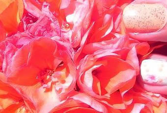 2.Las flores…siempre inspiran Una vez allí, resulta que había un porche y un jardín preciosos donde encontrar campanillas, rosas y esas sencillas flores de geranio tan típicas de los balcones andaluces y tan bonitas ellas en sus múltiples tonos. ¿Cómo escapar a una manicura floral? No fue una, sino dos las que hice. En primer lugar tenéis ésta, en tonos más anaranjados gracias a al esmalte melocotón/coral suave de Kiko (tono 358 ) que predomina en todas las uñas salvo la anular, en la que tenemos de nuevo el Peach Neglicé de L’oreal.