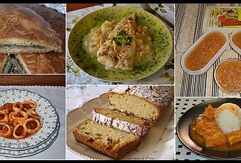 Aunque este reto no está activo en la actualidad, para mi ha sido uno de los retos donde más recetas tradicionales y con los sabores de siempre, he visto y en las que en casi todas las ocasiones he participado. Quiero hoy con esta entrada rendirle homenaje a la Marquesa de Paraberes por haber sido pionera en estos temas de gastronomía escrita, y a mi amiga Estela, del blog Mi Dornillo, darle las gracias por ser la fundadora del reto, y que yo gracias a ella descubrí. Es una pena que durara tan poco, porque tenía unas recetas estupendas y caseras, pero estoy segura que tarde o temprano volveremos a la carga y lo intentaremos de nuevo.Pinchando en el enlace correspondiente de cada plato podemos acceder a la receta completa. Torta a la mallorquina Cola de merluza estofada Carne de membrillo Calamares a la malagueña Plum cake Pollo al curry