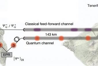El grupo del austríaco Anton Zeilinger ha logrado un nuevo récord de distancia en el teletransporte de un estado cuántico, nada más y nada menos que 143 km entre las islas de Tenerife y La Palma, en las Islas Canarias. Como muchos ya sabréis, el teletransporte cuántico no tiene nada que ver con el teletransporte de las películas de Star Trek y similares. Solo se puede transportar el estado cuántico de un sistema cuántico a otro, siendo necesario transportar previamente uno de dichos sistemas. Además, el teletransporte cuántico no permite enviar información más rápido que la velocidad de la luz, pues para realizar el teletransporte es necesario enviar por un canal clásico cierta información clásica sobre el estado transportado, así que no se puede lograr un comunicador ansible (“Comunicador Instantáneo Filóticos Parallax”) como los de la Saga de Ender de Orson Scott Card. ¿Para qué sirve entonces el teletransporte cuántico? Para implementar ciertos protocolos de comunicación cuántica segura (que permiten saber cuándo hay un espía en al comunicación) y para implementar ciertos algoritmos cuánticos. Nada espectacular para algunos, pero cosas muy importantes para los especialistas. El artículo técnico es Xiao-song Ma et al., “Quantum teleportation using active feed-forward between two Canary Islands,” Nature, Published online 05 September 2012 [arXiv:1205.3909].