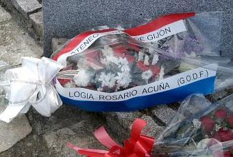 Ofrenda floral del Ateneo Obrero de Gijón y de la Logia Rosario Acuña al pie del monolito que recuerda a las víctimas asturianas de la Deportación