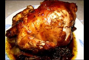 Se prepara el sazón con el ajo, los ajíes dulces, el orégano y la sal. Se lava bien el pollo y luego se lava con el jugo de naranja agria y se le deja (No se enjuaga con agua) Se sazona bien. Me gusta hacerle pequeños orificios debajo de las alas y los muslos para ponerle sazón.