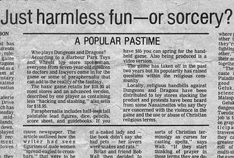 Vamos a ir terminando el día de hoy con una entrada mas. Aunque a día de hoy, D&D en particular y los juegos de rol en general viven, un momento dulce sobre todo en cuanto a popularidad y aceptación social , hace unos 40 años, estuvieron en el punto de mira de fanáticos religiosos, pesca-fortunas, medios de comunicación sensacionalistas, vendedores de mercachifles, charlatanes y cosas peores, en lo que se vino a llamar como el "Pánico Satánico de los 80", que mas tarde tuvo sus trazas continuadoras en España, a mediados de la década de los 90.