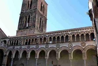 Trotula vivió en el siglo XI, el mismo en que se construyó la catedral, sobre las ruinas del templo paleocristiano anterior. La basílica prerrománica se ha cubierto en gran parte con un caparazón barroco pero quedan partes originales como el bello atrio y el campanario.