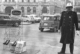 La foto adjunta evoca una escena desaparecida del mapa urbano, como tantas entrañables del ayer: el municipal dirige el tráfico y, al lado, tiene los regalos que muchos ciudadanos entregaban a los municipales en Diciembre. La gente joven ya no ha contemplado tal estampa, pero sí quienes peinamos alguna cana. A mi esta foto me hace viajar de manera emotiva por el túnel del tiempo, me traslada a la inolvidable infancia. De profunda sencillez, simboliza el ambiente cálido de la Navidad más popular y auténtica (tan alejada, por desgracia, de la actual). Pulsando en ella se ve completa. Desconozco el nombre del autor, pero es realmente magnífica. ¡Qué recuerdo!