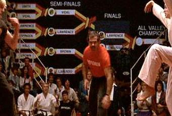 El “malo” que he comentado, tanto aquí como en el remake (aunque ahí son más niños que aquí) no lo es tanto. Le hace putadas a Daniel, se burla de él, pero si ves la película el verdadero cabronazo es su Sensei, su maestro, su entrenador. Conforme avanza el combate se ve claramente que hay dos posiciones enfrentadas entre los dos adultos. Uno, Miyagi, que piensa (sabiamente) que las artes marciales son de defensa y tiene que ser un arte limpio, sin violencia gratuita. Y la del otro equipo, que manda a sus “secuaces” a que revienten a Daniel cueste lo que cueste. Esos momentos, donde los alumnos piensan que no todo vale (a base de miradas y algún que otro consejo a Daniel), son posiblemente los mejores. Aunque a nosotros nos siga encantando la patada de la Grulla.