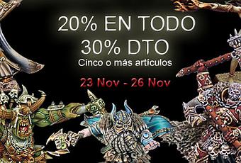 Bueno, pues la marca catalana de figuras y juegos Avatars of War tiene una oferta especial que va desde hoy dia 23 (Black Friday) hasta el lunes 26 (Cyber Monday): 20% de descuento en todo, figuras, cajas, etc. Y si compras 5 o más artículos 30% de descuento. Y gastos de envío a toda España,gratis.