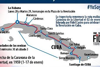 La Caravana del cortejo fúnebre con las cenizas del ex presidente y líder histórico de la Revolución Cubana, Fidel Castro, comenzó hoy su recorrido hacia la oriental provincia de Santiago de Cuba, donde será inhumado en el cementerio de Santa Ifigenia.