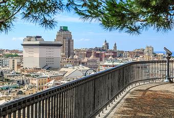 Desde Spianata Castelletto , la Génova de los callejones, aparece más comprensible una ciudad misteriosa e inextricable y se hace más evidente su belleza. La vista se extiende desde Levante hasta Ponente y casi se puede tocar la Lanterna, símbolo de la ciudad, mientras las villas de Albaro se iluminan de rosa al atardecer. Allá a la izquierda está Boccadasse, un antiguo pueblo costero justo en la ciudad. Apenas se puede vislumbrar y parece invitarnos a un descanso del frenesí y a una visita a sus románticos restaurantes en la famosa playa de guijarros.