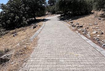 La primera estructura que encontré fue un muro revestido de piedras a ambos lados, con una pasarela de unos 3 o 4 metros de ancho en el medio. Ubicado en la parte interior de la ciudad, la presencia de este muro me planteó dudas, ya que ya había pasado los muros que rodean Priene y completado las escaleras que conducen al centro de la ciudad. Cuando leí el letrero cerca de la pared, supe que este montículo en realidad estaba hecho de escombros de la excavación. Inicialmente se pensó que el muro, formado por arqueólogos alemanes que amontonaban tierra extraída durante la excavación de 1896, no tenía importancia, por lo que los escombros se arrojaron aquí. Sin embargo, más tarde se descubrió que la puerta oeste de la ciudad estaba enterrada bajo estos escombros.