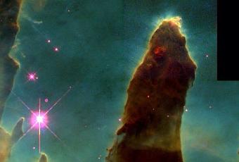 En 1995 el telescopio espacial fijó su mirada en una guardería estelar dentro de la Nebulosa del Aguila. una gigantesca nube de polvo y gas donde se estaban formando nuevas estrellas.