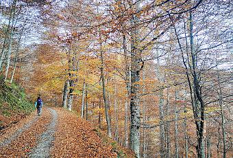 Enlazamos con la pista que desde les Bedules atraviesa todo el hayedo hasta alcanzar la majada Arcenorio. Nos resta muchos kilómetros de pista hasta regresar a nuestro vehículo en Les Bedules, pero gracias a los bonitos colores del otoño la hicieron más llevadera.