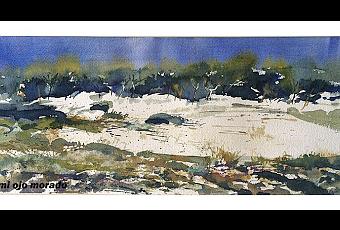 Hoy me ha hecho recordar el verano, el sol y el calor. Parece que ya empiezan a subir las temperaturas y dejamos definitivamente atrás el frío. Por eso quizá he elegido esta pequeña acuarela que me trae recuerdos de verano. De veranos de mar y de dunas.