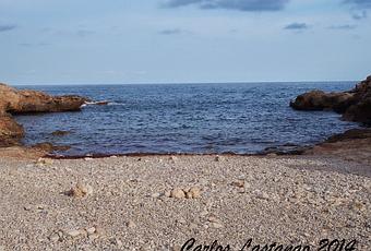 Os contaba que este año, en nuestra “semana mediterránea” habíamos hecho una jornada intensiva de mar. El lugar elegido ha sido la costa de Castellón, más concretamente Alcocéber. Durante una semana hemos acudido a nuestra cita con el mar. Ha habido días de playa arenosa pero al final tomamos la determinación de ir mejor a las calas pequeñas, ya que mis hijos ya no juegan a hacer castillos y sin embargo sí que disfrutan con la máscara y el tubo buceando en las proximidades de la orilla. No es necesario hacer grandes ni lejanas inmersiones para pasar unos ratos buenísimos en la playa, en lugares cuya profundidad no es necesario que supere ni los dos metros, aunque con aguas algo más profundas se ven peces algo más grandes. Las tardes en la Cala Mundina (arriba) fueron muy entretenidas, pero las dos mañanas que pasamos en la Cala Blanca (abajo) no lo fueron menos. El fondo de la Cala Blanca es de arena pero a los dos lados hay zonas de rocas donde la fauna era la misma que pudimos ver en la Cala Mundina y de la que os hablaré esta vez y en la siguiente ocasión. Para ver las imágenes que identifiquen a aquellos especímenes de los que no dispongo fotografía, lo mejor es poner los nombres científicos en el buscador y buscar imágenes.