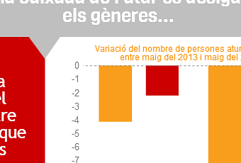 Desde UGT de Catalunya se ha elaborado esta infografía sobre los datos de paro de mayo del 2014, en comparación con los de mayo del 2013. Es interesante ver que el paro desciende en casi todos los sectores y de forma generalizada. Hay más datos interesantes, como que aumentan los contratos indefinidos, hay aumento de la afiliación en la seguridad social, etc… que indicarían que se comienza a contratar y la gente está buscando empleo con algo más de alegría. Hay cierta confianza, al menos al compararlo desde hace un año.